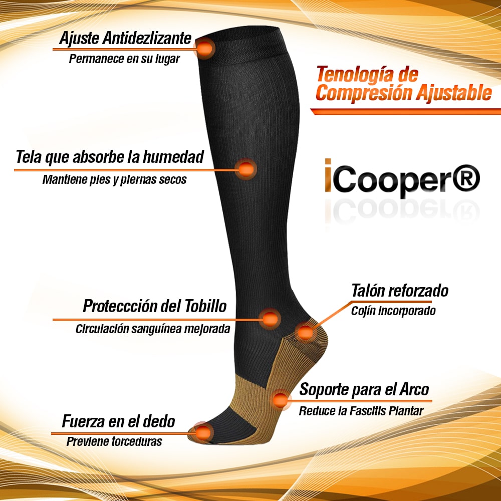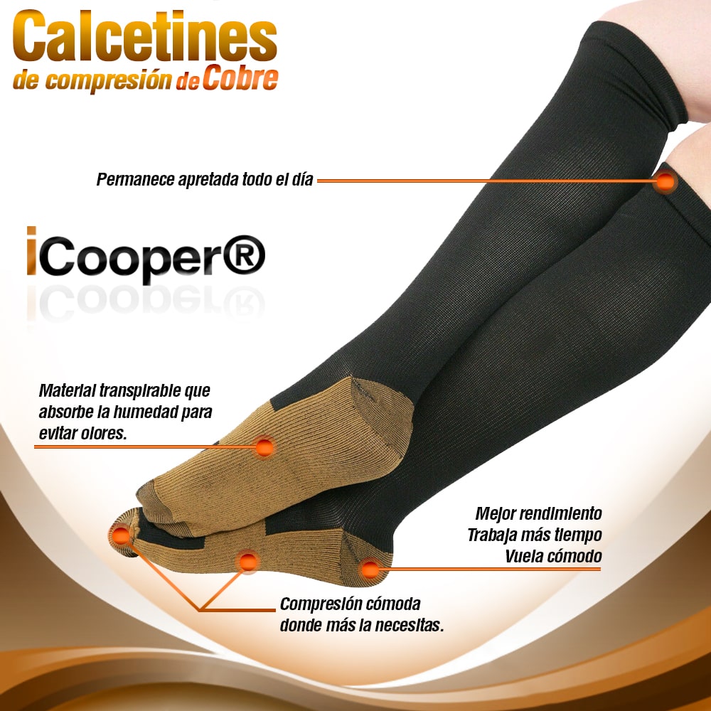 FINALMENTE las medias con la compresión exacta de 15-20 mmHg. Renueva tus piernas con nuestros Calcetines de Compresión iCooper® y mantenlas cómodas y saludables. Ordena las tuyas y dile adiós a tu dolor hoy mismo... ¡Estamos seguros que te encantarán!
