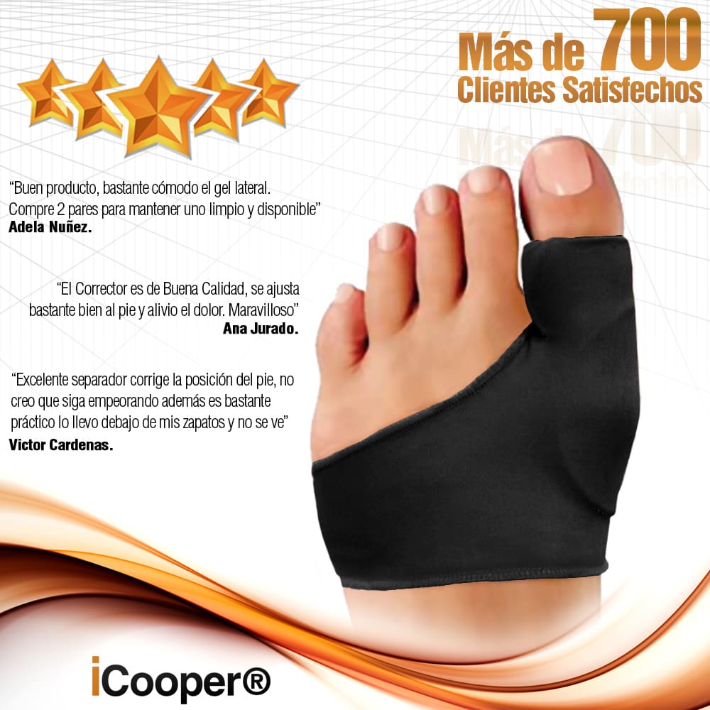 ¿No te gusta el aspecto de tus pies? iCooper® cuenta con un separador de dedo que ayuda a corregir desviaciones y se asegura que todo vuelva a su lugar.