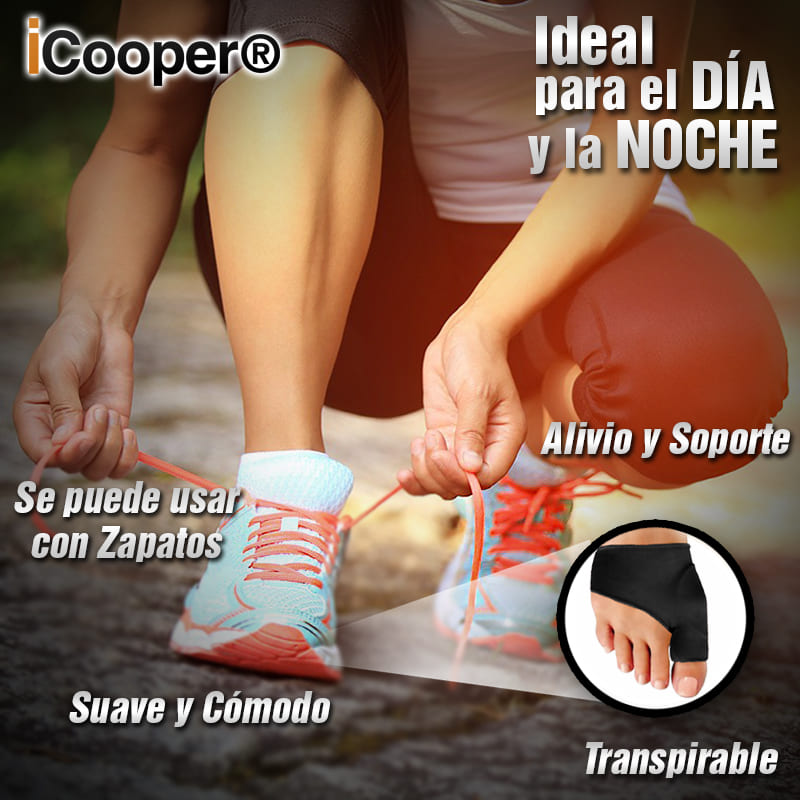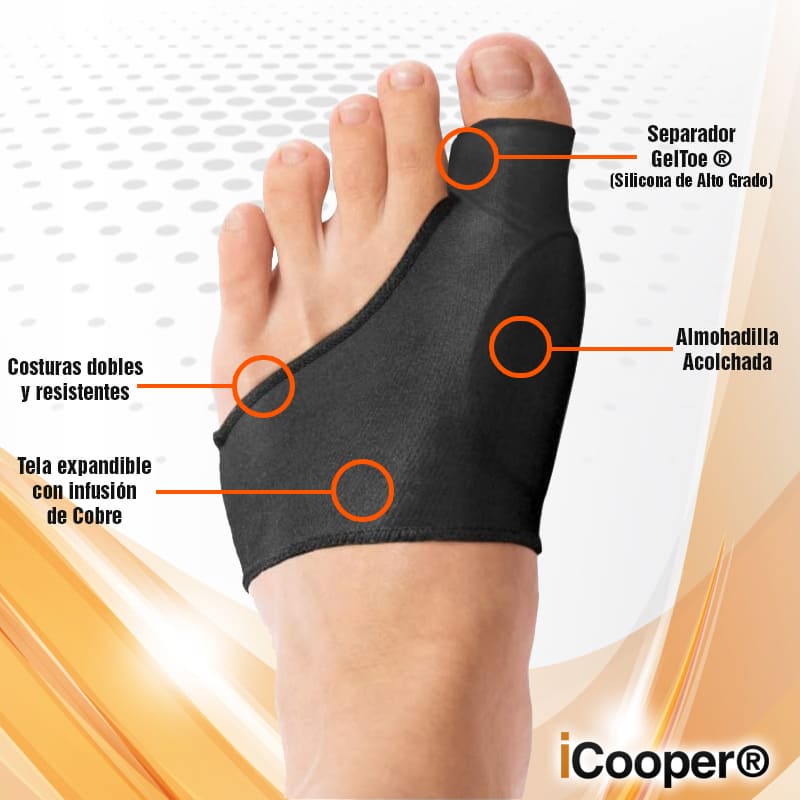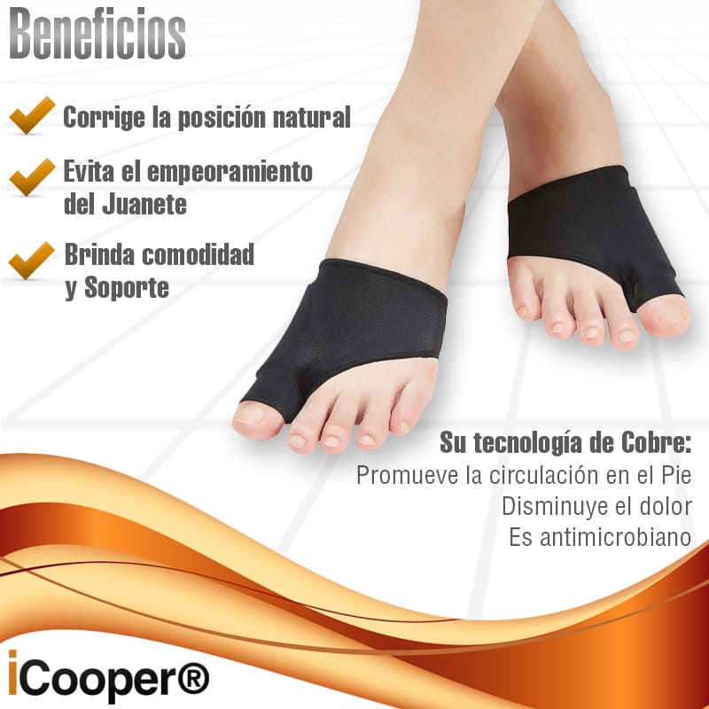 ¡Vive tu vida sin limitaciones! Nuestro Corrector de Juanetes de Compresión con Cobre infundido iCooper® proporciona máxima comodidad y máximo alivio a los dolores ocasionados por los Juanetes.