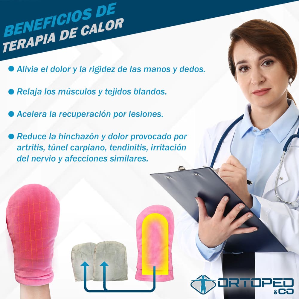 ✅ Aplicar calor consistentemente puede ayudar a aliviar el dolor y la rigidez de las manos y dedos, relajando los tejidos blandos, aumentando la circulación y estimulando la producción de líquido articular.