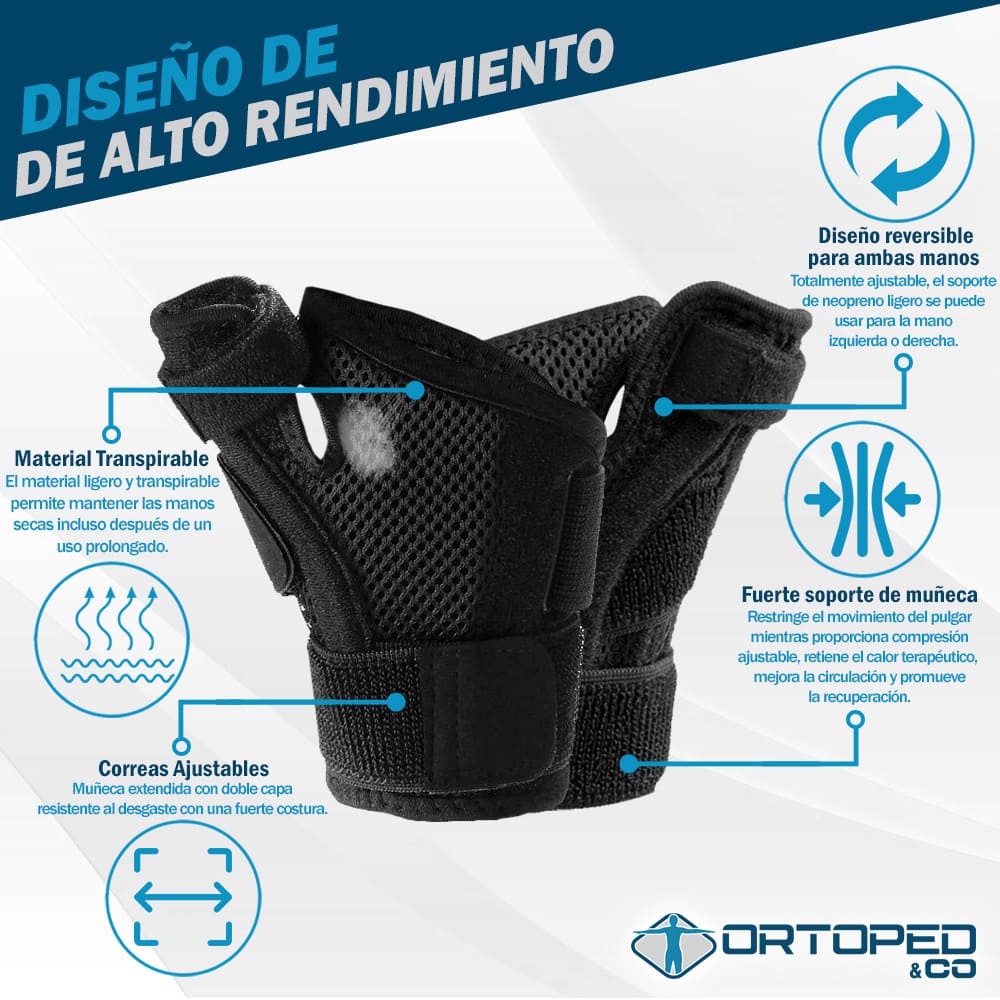 El soporte de pulgar integrado estabiliza la articulación y reduce la tensión en los músculos y tendones, lo que es esencial para tratar afecciones como el túnel carpiano y la tendinitis.